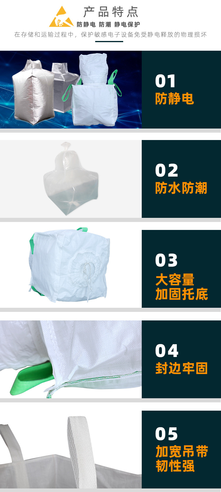 Hình túi: Hình khối lập phương Vật liệu: bên ngoài PP bên trong lá nhôm Trọng tải thông thường: 0.5-1 tấn Vật liệu: tùy chỉnh lên và xuống Đặc điểm: chống thấm nước và chống ăn mòn